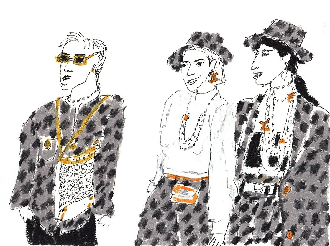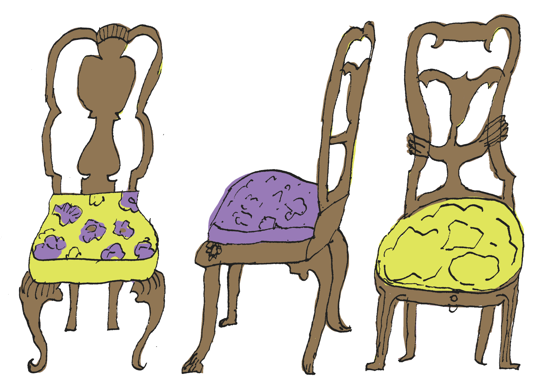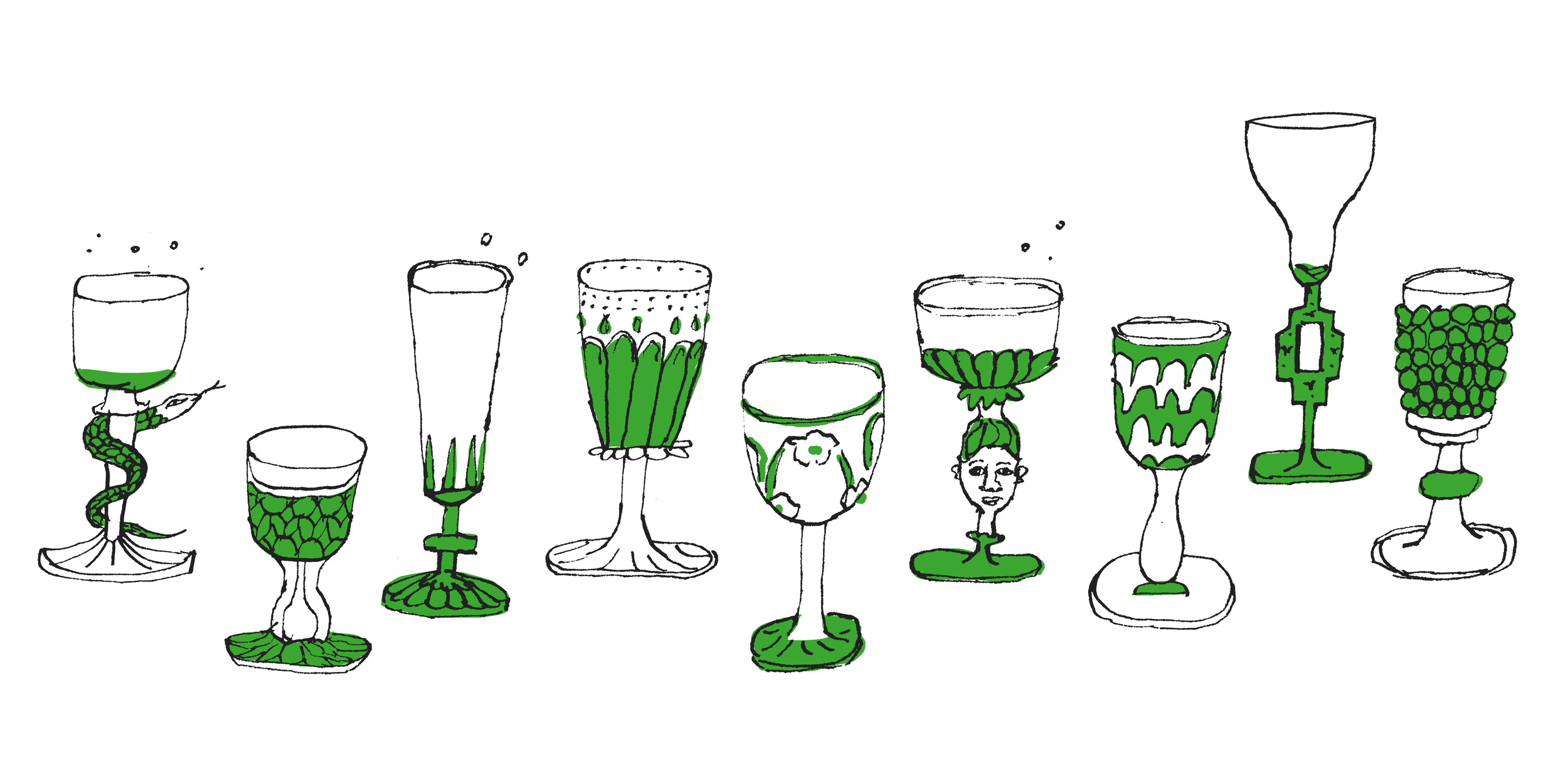 Food, objects, and scenes of (fabulously dressed) people posing, doing things, as well as portraits of animals. Drawings are created with pen & ink, gouache, and are sometimes digitally colored.